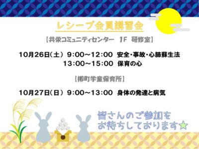 レシーブ会員講習会のお知らせ 投稿日 2023年9月5日 著者 root カテゴリー お知らせ 講習会を開催いたします。 お申し込みは 070-1073-4311かLINEからお申し込み下さい♪お待ちしております☆彡この記事を書いた人 root 記事一覧 ウェブサイト